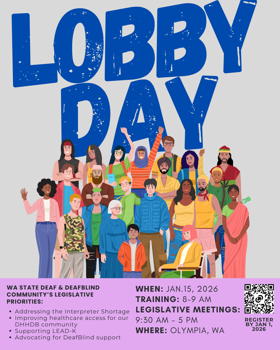 We are planning a Lobby Day (January 15, 2026) in support of the Washington State Deaf and DeafBlind community. We want to see more positive changes on the legislative level. Please join us!